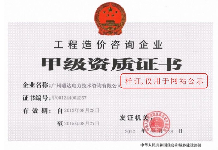 根據(jù)《工程造價(jià)咨詢企業(yè)管理辦法》的規(guī)定,經(jīng)中華人民共和國(guó)住房和城鄉(xiāng)建設(shè)部審核批準(zhǔn),廣州曦達(dá)電力技術(shù)咨詢有限公司乙級(jí)工程造價(jià)咨詢企業(yè)晉升甲級(jí)資質(zhì)。本公司資質(zhì)晉升之后,可承接各類大中型工程項(xiàng)目,歡迎廣大新老客戶與我公司聯(lián)系、洽談合作。